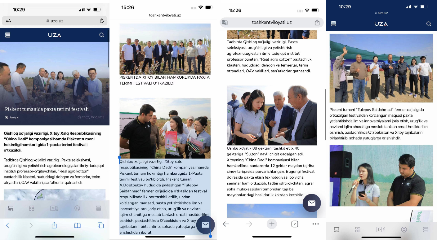 To provide farmers with a tangible sense of the product’s effects, Metakel conducted on-site demonstrations in multiple trial fields across Uzbekistan. In these fields, Metakel used its latest organic fertilizer products for real-world application demonstrations. By comparing crop growth before and after fertilization, the demonstrations showcased the significant improvements in crop yield and quality.